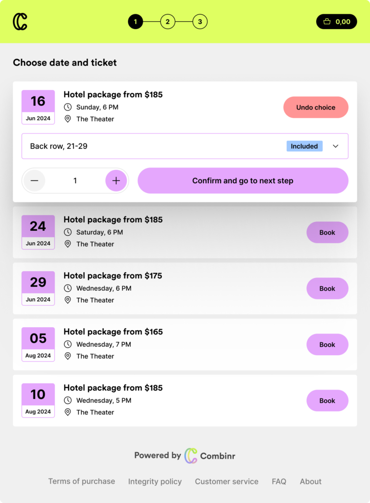 Combinr easily integrates into your website and is fully customizable to match your brand, ensuring a matching look and feel for your site while delivering a better booking experience for your attendees.